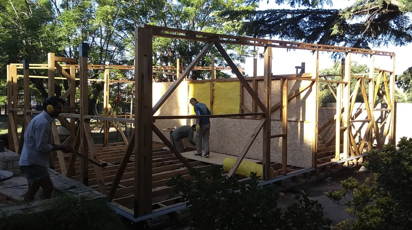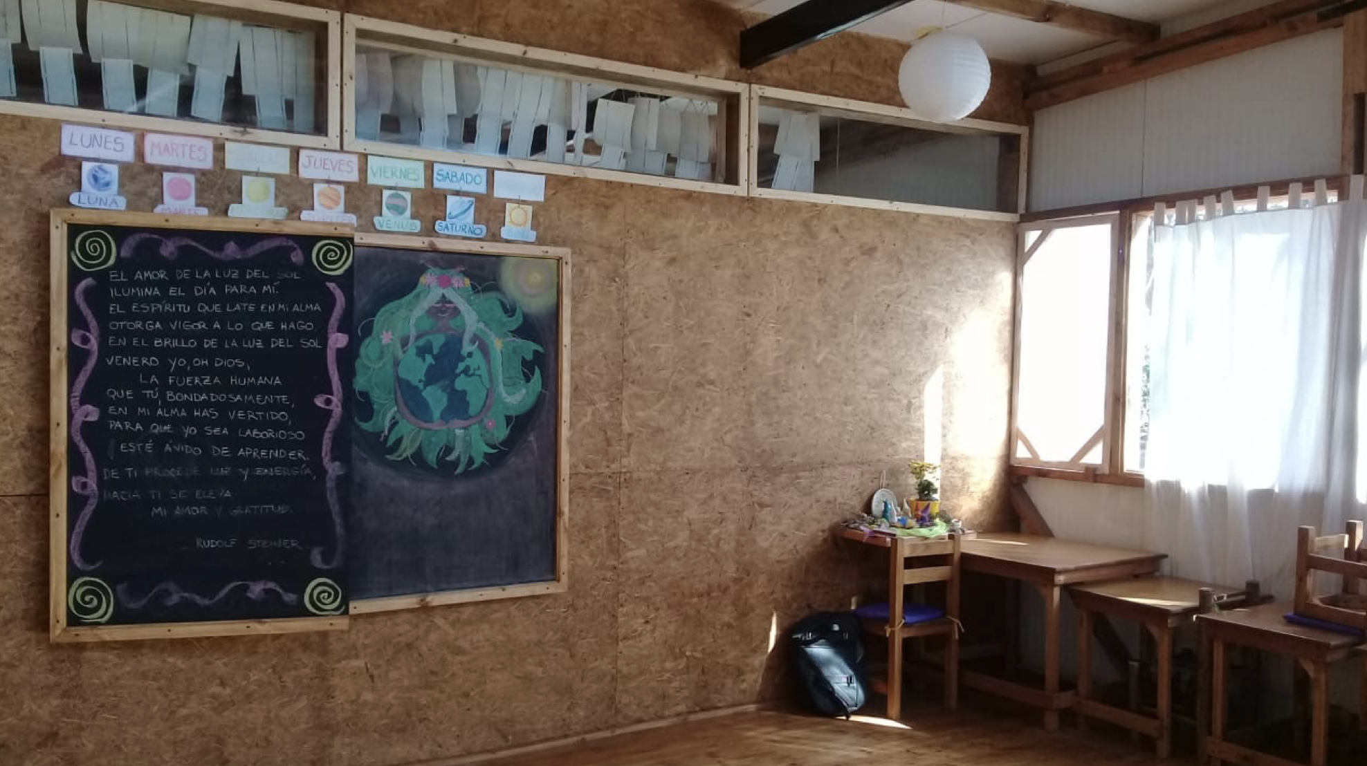 – Recuerdo que nos pusimos en búsqueda de fondos, financiamiento, donaciones para construir nuevas salas y, gratamente, a fines de 2019 logramos conseguir una donación muy significativa a la que luego, en el transcurso del proceso constructivo, se fueron sumando varias más que, hicieron posible la construcción de las tan anheladas aulas para nuestros grupos de primero y segundo grado que ya eran para el año 2021, alrededor de 20 estudiantes en cada sala. No era posible comenzar en el edificio anterior. La construcción de las aulas costó alrededor de 30.000 USD de los cuales, la donación más importante fue la de la Asociación Freunde Waldorf representando un 30% del monto, luego la donación de paneles aislantes para construcción de techos y muros de la empresa local Friolatina que representó un 20% del valor de la obra. Hubo también, aporte de otras empresas como Electec con materiales eléctricos, Energe con la climatización solar de las salas y fundamentalmente, el aporte de la comunidad en materiales y mano de obra para la realización de la construcción. El trabajo de construcción comenzó en noviembre de 2019, luego tuvo que hacerse en el marco de las restricciones de circulación que imponía el contexto de la pandemia de COVID durante el 2020, pero aún así logramos finalizar la obra para julio de 2021.